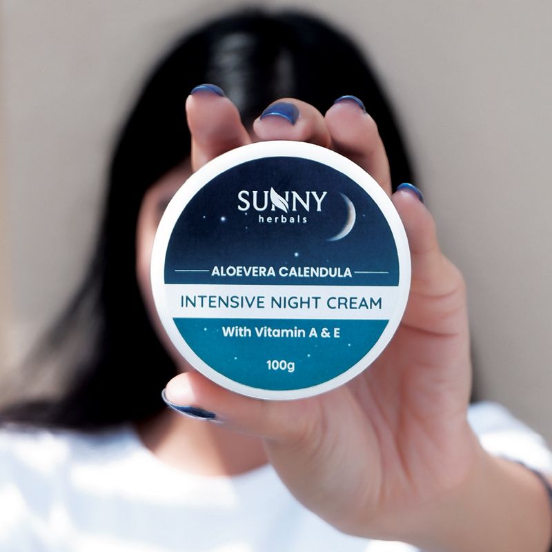 A nourishing night cream enriched with Aloe Vera, Calendula, and Vitamins A & E, designed to hydrate, firm, and rejuvenate your skin overnight, promoting a youthful and radiant complexion.