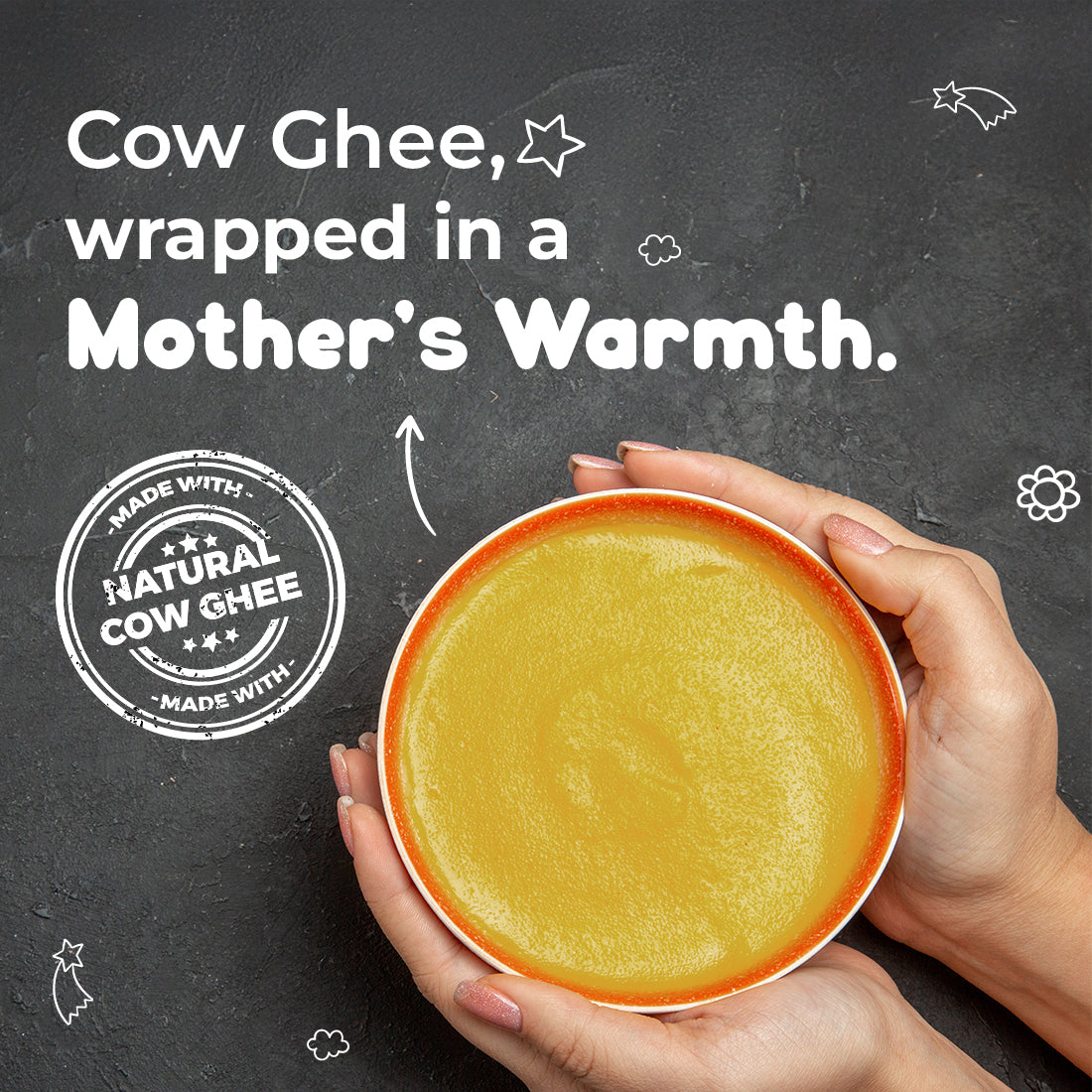 Gentle cow ghee massage nourishes your baby’s delicate skin while creating a calming, comforting bonding ritual.
